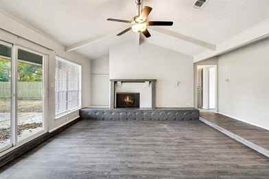 Beautifully updated three bedroom two bathroom home offering a spacious and functional layout with recent interior improvements throughout. The living area features vaulted ceilings with exposed beams, a wood burning fireplace, and large windows that bring in excellent natural light. A sliding door provides easy access to the backyard and patio.