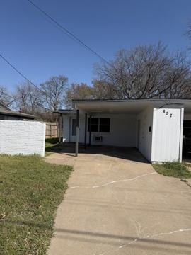 Duplex 2 bedroom, 1 bath, kitchen and living room, laminate floors, space heaters and window ac units. Covered carport and a backyard with chain link fence.