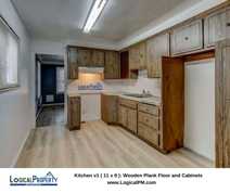 The kitchen stands out with its unique hickory-stained wood finishes, generous counter space, and easy-to-maintain surfaces. Fully equipped with a dual-bowl sink, spray nozzle, and garbage disposal, its designed to make everyday living both stylish and practical.