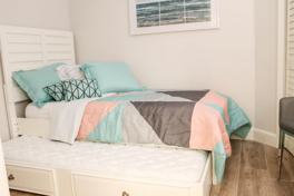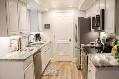 14 NIGHT MINIMUM REQUIREMENT. This fabulous condo is on the 2nd floor in a building with an elevator and has been completely updated with all of the comforts of home. You will walk in impressed and want to head straight for the wine to relax is this pristine vacation home. Freshly painted with brand new flooring, appliances and furnishings. The Master bedroom is equipped with a King sized bed and walk in closet. Guest bedroom offers a Twin trundle bed for even more enjoyment. Condo features a 50'' flat screen in the living room, a 40'' flat screen in the Master, and a 32'' flat screen in the guest room. The dining room is immaculate with seating for four that has views of the pond. Washer/Dryer, Cable & WiFi included with this rental, along with all of the amenities at Ocean Village