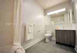 Unit Features white marble counters, stainless steel appliances, remote key access