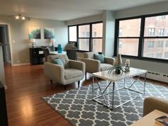 GUT REHAB! Huge Combined unit creates a split 2 Bedroom / 2 Bathroom floor plan for a great unit with lots of privacy! Wood laminate flooring throughout. Brand new gray kitchen cabinets , stainless steel appliances, granite countertops, new light fixtures,freshly painted. Beautiful Sunset views from an entire wall of west facing windows. Huge walk in closet. Rent includes: Heat, water/hot water, extra storage. $200 non refundable move in fee. Parking available for additional fee.