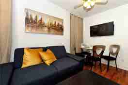 Call or text Brett at (917) 397-4544 to view today! V-Futon Style Couch- 5th Floor apt (4 flight walk up) Space Bedrooms : 1Beds: 1Bathrooms :1.0Rooms : 2Floor : 5Sleeps : 4Sleeping couches : 1Living Room Seats : 1Dining Room Seats Queen Bed, Kitchenware, Wifi and Flat screen TV Feel free to reach out at brettcomeaux55@lgfairmont.com or 917-341-4587.