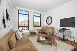 Welcome to The 321 Boutique Elevator building in East Village. The spacious kitchen is a cooks dream, with a surplus of cabinets, breakfast bar, full-sized stainless steel appliances. This unit faces north with bright, open views of a huge community garden. Can fit a queen sized bed, couch plus extras, and spacious kitchen layout. Unit Features:-Dishwasher-Microwave-A/C and Heating-Oversized windows with built in solar shades-Hardwood floor-breakfast barThe building features a huge common rooftop deck, laundry room, and bike storage room. Video available upon request!Supermarket (Shop Fare) & Post Office around the corners! 3 Citibike stations within 3 blocks. Bus lines M9, M14, M21 run crosstown, downtown, uptown!*Photos are staged and representative of layout not actual unit.