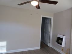 This is a two bedroom, one bathroom duplex that has electric baseboard heat, supplemental gas wall-furnace, stove, refrigerator and microwave. No animals are allowed.