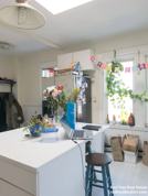 This has a fantastic kitchen that includes a down-draft vented Jennaire electric cooktop in addition to a full gas stove, skylights in kitchen and one bedroom. This apartment has been expanded to include what was formally some common space both at the entry and also the rear of the unit bringing the total size to roughly 1300 sqft.