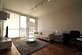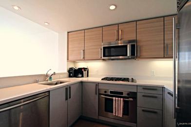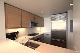 Unit features: Walnut hardwood floors (plush carpeted bedroom), gourmet stainless kitchen with professional appliances and breakfast bar, large living room with floor to ceiling windows, large bedroom, silhouette shade window coverings and modern bathroom with a glass encased tub.