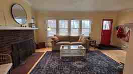 Charming 2-bedroom, 1-bath home featuring beautiful hardwood floors and large, bright windows throughout is available for rent starting January 1st! The spacious bedrooms on the upper floor and the bathroom offer plenty of room for comfortable living. The wood countertops in the kitchen provide a warm, inviting feeling. The living room features a red brick fireplace, built-in bookshelves, and the corner hutches in the dining area, all adding character and convenient storage. A fenced backyard is perfect for outdoor enjoyment, and the utility closet lined with pegboard makes storage a breeze. Laundry is conveniently located in the basement, which also offers additional shelving for extra storage. A staircase with a small landing leads up to the second floor, opening to the upper hall, which features another built-in storage area, rounding out this well-designed, welcoming home. There are two off street parking spaces at the back of the property. Contact us today to schedule your private showing!
