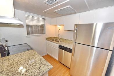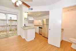 Unit features; wood burning fireplace, kitchen bath room and half bath room granite countertops with under mounted sinks. Stainless steel appliances and one assigned covered parking space. NEW Berber carpet on 2nd floor in two bed rooms, ceramic tile in kitchen, half and full bathroom, 1st floor has faux wood vinyl, hardware and ceiling fans. WD included. Nice fenced patio and small complex with gated community.