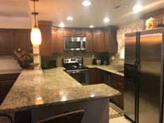 Living room has large 50 inch smart TV, brown leather furniture, large dining table, etc. Kitchen fully stocked to cook anything and everything.
