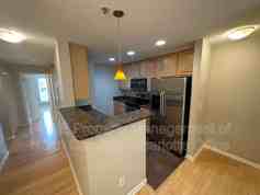 This property features a great room with hardwood floors and a Juliette balcony with views of nature. The open kitchen includes granite countertops, stainless steel appliances, and a breakfast bar. The main level also has a bedroom with a full bath and a stacked laundry unit.