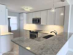 Stunning oceanfront condo has been updated from top to bottom and freshly painted. This unit has Electric roll down shutters on entire east side. Completely renovated kitchen has new cabinets, granite countertops, subway tile backsplash and stainless steel appliances. Recently replaced AC, new diagonal set tile throughout. Primary bath boasts new double vanities and new tiled shower with new glass door. Large walk-in closet in primary suite and big slider to spacious 33 foot long balcony that hangs out over ocean. Guest bath has new vanity + new shower. New LED lighting and new electrical switches + outlet covers. Large living room/dining room has double slider to balcony that has incredible views. Private laundry room w/new washer and dryer and new HWH. Secured lobby w elevator. Community pool with restrooms and kitchen area to entertain. One car garage with storage closet perfect for beach toys. Walk to shops +restaurants. Water included in HOA. No short term rentals considered.