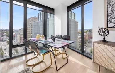 Oversized soundproof windows in living areas and bedrooms create bright, peaceful interiors with dramatic city views. Open kitchens are designed with custom-built cabinets and stainless steel appliances. Baths feature Italian porcelain tile paired with sleek Porcelanosa fixtures. All residences include custom solar window shades and Bosch washers and dryers.Contact Cherish Dawn 347-607-7775 or **** Hillel196102