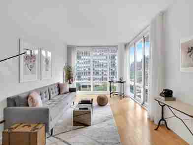 This South facing sun flooded 1 bedroom gem apartment will not last!It is located in a beautiful and the only Green LEED-Certified Gold Condominium in Murray Hill.The apartment is very cheerful! It has high ceilings, bamboo floors and big windows provided with shades and curtains.The spacious and cozy living room has floor-to-ceiling corner windows facing South and West with charming views overlooking the double width 33rd Street . The building across is far away and is fronted with a lawn and trees.The kitchen is opened to the living room and has a large pantry, an island countertop and Bosch stainless top appliances including a washer and dryer. The master bedroom can fit a king size bed. The bathroom has double vanity sinks, Bianco Dolomite marble walls, sparkling quartzite tile floor, glass mosaic tiles and Kohler and Groher fixtures.303 East 33rd is a full service 24 hr concierge building with an amazing wide lobby surrounded by glass. Top amenities include a wide exterior back garden with a working fireplace, a 5,000 square foot rooftop garden on the 12th floor with a barbecue grill, an area for playing mini golf, for lounging and enjoying spectacular views of the NYC skyline including the Chrysler and Empire State buildings as well as the East River, a fitness room, a resident's lounge, an entertainment area and a bike room. Annual - $4,000 Per Month