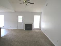 Lee County home w/large great room w/gas log fp that is open to kitchen and dining area. Breakfast bar, gas stove. Split floor plan w/2 bedrooms and hall bath off Gr. Rm. Primary bedroom w/walk in closet and ensuite. Fenced back yard, covered back patio, stor. shed. Avail: Now. No pets accepted