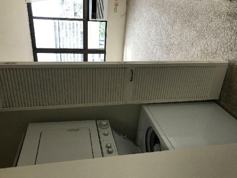 3. There is a Resident Manager, secured entry, laundry room, elevators, swimming pool, Jacuzzi, sauna and barbecue area. A coed exercise room, tot-lot and party room for private parties are also available. This unit has air conditioning plus a complete kitchen with a refrigerator, range, dishwasher and disposal. A washer and dryer are also in the unit for your convenience. There is also a walk-in storage locker just down the hall.