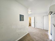 Pet FriendlyStudio apartment in downtown Colorado Springs for rent. This apartment has a covered entry at the front of the main building that leads to a staircase for the second floor. The apartment opens into the living room/bedroom area, with a generous closet, and a mini kitchen that comes with a mini fridge, and 2 burner electric stove top. Large deck opens up to views of the front range. 1 full sized bathroom, a mini split system for heat and air, 500 sq ft of floor space, and a deck.