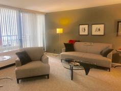 Large furnished 1 bedroom with huge balcony. Price include heat, a/c, gas, private daily bus shuttle. Beautiful domed pool, basketball, racquetball, ping-pong, free weights, cardio, massage, sundeck, community BBQ grills and more. Huge health and fitness spa. The building is amazing. Hair and nail salon, bar and grill, library, media room and hospitality room. Fabulous sun deck. This is a great unit in the heart of the New Eastside neighborhood. Walk to Millennium and Maggie Daley parks. Near Michigan Ave., Near North and State Street shopping and entertainment. Easy access to Chicago's Lakefront, Navy Pier, and bike/running paths. Tennis courts, ice skating, climbing wall, huge multi-roomed kiddie play lot all in the new Maggie Daley Park. Also down the street is Millennium Park for world-class concerts and entertainment.