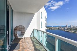 Available Nov 3rd. Spectacular views of the Halifax River and Intra-coastal Waterway from this 25th floor condo on an 18 acre waterfront community. Modern kitchen, granite counters, and stainless steel appliances. Lavish master suite features the master bath with beautiful tile floors, dual vanity sinks, ample counter space, free standing tiled shower and roman tub. Second bath features a tiled walk-in shower. Floor to ceiling patio doors. The community features a gated entrance with 24-7 security, covered parking, and concierge service. World class amenities include 2 Clubhouses, Fitness Center, Social Rooms, Billiards Room, Theatre Room, Steam Rooms, Saunas, Yoga Studio, 32 Slip Marina, and Olympic and heated Infinity pools.