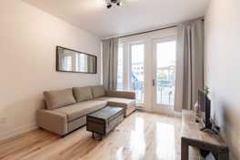 Fully Furnished condo with a lot of natural light in the heart of the action. This 2 bedroom condo located steps away from the corner of Saint-Laurent and Prince Arthur offers 2 balconies and a ton of storage room. It is walking distance from bars, restaurants, grocery stores and Sherbrooke metro station. It’s a newly built condo with recently renovated hardwood floors.
