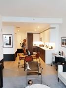 This elegant east-facing one-bedroom residence features an in-unit washer/dryer, white desert oak flooring, floor-to-ceiling windows, solar shades, LED lighting and more. The kitchen includes a gas range, dishwasher, custom cabinetry, under cabinet lighting and Ceasarstone counters, while the bathroom offers a tri-view mirror with storage and custom European vanity.