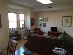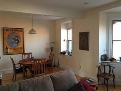 South End Entire Floor Two Bedroom Penthouse Apartment in meticulously maintained brownstone steps to Symphony Hall and the Prudential Center. Large front-facing living room with bay window, maple floors, high ceilings, Central Air, decorative marble fireplace and large alcove perfect for dining or home office. Separate fully-applianced kitchen with gas cooking and maple cabinets, tiled bath. Private Roof Deck with panoramic skyline views! Common laundry. Gas heat not included. Cats ok. Available mid January or February 1. Professional tenants only - must qualify on their own without a cosigner. 12 Month lease only. NO DOGS. ONE MONTH'S RENT FREE!