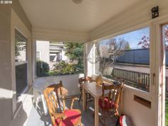 This home features glassed-in front porch, beautiful oak hardwood floors and hard surface flooring throughout (no carpet!), separate laundry room with washer and dryer provided, spacious living room opening onto big, open kitchen with dining room, breakfast bar, gas range, dishwasher, and ample storage space. French doors leading from dining room open onto side patio.
