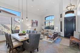 Furnished Saguaro Sky Retreat in Grayhawk embodies high-end resort styling and amenities with your own private space. The fully stocked open kitchen has professional appliances, granite countertops & spacious island with breakfast bar. Two separate family rooms plus a formal dining room. The primary bedroom suite is located on the first floor and 3 additional bedrooms upstairs, 2 with king beds and 1 with 2 twin beds. All with updated bathrooms. Beautiful sunset views will be your evening backdrop with west facing backyard and no back neighbors. The putting green, misters, gas BBQ and cooktop, & fire table complete this stunning backyard paradise! Walking distance to grocery store & Starbucks or ride in style using the 4 cruiser bikes.