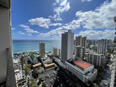 Beautiful, furnished, ocean view condo room with 1 bedroom with 2 twin beds, 1 bath, 1parking unit at Waikiki Banyan. Walking distance from Waikiki Beach.