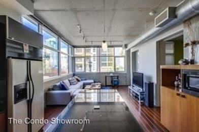 3 bed/2-bath 1217 sq/ft condo comes with 1 assigned underground parking spot. Features include: remote control window shades, upgraded kitchen appliances, gas range/stove, designer cabinetry, rich wood flooring throughout, private outdoor balcony, side by side washer dryer, vaulted ceilings/modern industrial feel with concrete and exposed duct work.