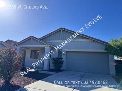 12755 W Chucks Ave, Peoria, AZ is a 3 bedroom, 2 bathrooms apartment for rent. It is located in the Vistancia neighborhood of Peoria. It has apartment amenities including central heat, outdoor space, in-unit laundry, ceiling fan, dishwasher, microwave, walk-in closets, and air conditioning. Cats and dogs are allowed, making it a pet-friendly apartment.