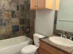This unique loft style space combines cool, contemporary design with ample square footage. The first floor features an entrance, secondary bedroom, and bath, adaptable for various uses. Sleek stained concrete flooring, track lighting, and surround sound wiring add modern touches. Upstairs, a spacious living room boasts high ceilings, pine hardwood floors, exposed vents, track lighting, built-in sound, and a fireplace. The kitchen offers granite block counters, stainless steel appliances, and a built-in workspace. The third floor hosts a stunning primary suite with cathedral ceilings, skylights, and large windows. The primary bath includes slate tiling, granite counters, ample storage, and a whirlpool tub. Washer and dryer included. This is a must-see property!