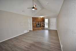 Lovely 2/2/2 duplex in DeSoto for rent. Open concept floor plan with vinyl plank flooring throughout. Living area features a brick gas starting fireplace and vaulted ceiling. Kitchen includes plenty of cabinet and counter space along with a dishwasher, disposal, stove and refrigerator. Nice sized bedrooms; primary bath offers his n' hers sinks. Fenced backyard with 2 patio areas. Come see your new home today! No pets please.