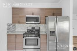 Step into your new unit and feel refreshed. With light wood-like laminate flooring and fresh white walls, the space feels so refreshing. The living room features two large windows that let in exceptional light, and opens up to the completely new kitchen—designed with an impeccable layout and all the appliances you need: fridge, stove, dishwasher, and microwave! There's plenty of cabinet space, and the high ceilings allow for above-cabinet storage. Imagine fitting a cute café table or even an island cart in this remodeled kitchen!