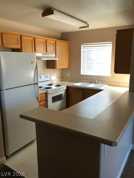 Upstairs 2-bedroom, 2-bath condominium located in central Las Vegas. Approximately 884 sq ft with open floorplan, living room with fireplace, separate dining area, and breakfast bar. Private balcony with exterior laundry room. Window coverings throughout. Primary bedroom located at rear of unit with en-suite bathroom. Located in a gated community with common areas including park and BBQ facilities. Small pets considered. Pet deposit $500 per pet.