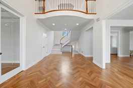Experience upscale living in this custom-built executive home that blends architectural grandeur with luxurious comfort. From the moment you arrive, the brick-paved driveway and courtyard set the tone for the extraordinary features within. Step inside to soaring ceilings, rich hardwood floors across two levels, and an elegant curved staircase that makes a lasting impression. The chef's kitchen is outfitted with Thermador professional appliances, a Sub-Zero refrigerator, custom cabinetry, and a large island perfect for entertaining or family gatherings. Retreat to a serene backyard paradise surrounded by mature trees offering privacy and tranquility. The fully finished basement adds valuable living space, complete with an additional bedroom, full bath, sauna, and recreation areas. Thoughtfully designed with two laundry rooms, tray ceilings, a cedar closet, and a heated 3-car garage-this home offers luxury, functionality, and style at every turn. Here is your chance to call it HOME.
