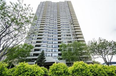 Welcome to this totally renovated corner suite with unobstructed views of the city. Almost 1500 s.f. of bright and cheerful living space offers 2 large bedrooms, a renovated family bathroom, a luxurious masters with a renovated ensuite and walk in closet. Grand living room with bay windows, dining room overlooking a spacious balcony plus a state of the art eat in kitchen with granite counters, peninsula and high end appliances with an in unit laundry room. This property includes a 24/7 gatehouse security, tennis and squash courts, indoor and outdoor pool, hot tub, exercise room, plus BBQ/Gazebo areas. Convenient access to shopping, public transit and HWY 417. We are looking forward to your visit!