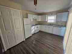 Discover this beautifully renovated single-family home just a short walk from the college. This 3-bedroom, 1-bath residence has been freshly painted and features brand-new luxury vinyl plank flooring throughout. The updated kitchen comes fully equipped with all appliances, including a stacked washer and dryer for your convenience. Enjoy outdoor living with a private side deck, a spacious yard, and a storage shed. Off-street parking is included, and landscaping services are covered in the rent. Tenant is responsible for electric, cable/internet and quarterly water/sewer/trash . Sorry no pets.