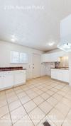 This apartment opens to the living room as the central point of the home. To the back of the living room is a newly updated kitchen with new cabinets and countertops, as well as washer and dryer hookups and access to the back door. To the right of the living room is a hallway that leads to a full bathroom and three bedrooms. This half of the duplex is on one level, with no basement, and does not include appliances.