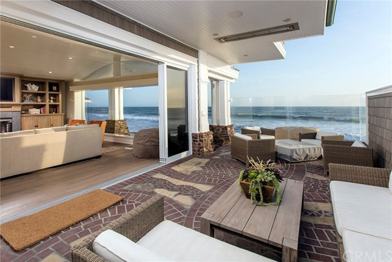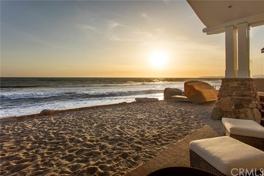 East Coast charm meets West Coast livability in this incredible beachfront home set on the sand in the community of Capistrano Shores. High-end appointments and attention to detail are evident upon entry with beadboard paneling, wainscoting, designer lighting fixtures, beautiful built-ins and wood floors. Ocean views beyond compare can be enjoyed throughout the open concept floor plan with a massive, seamless window and stackable glass doors that lead to a wraparound patio with built-in overhead heat lamps, fireplace, and partial glass enclosure for protection from the elements. An oversized kitchen island marries the dining, living, and kitchen areas to create a great room central to every future memory at the beach. A first floor guest suite completes the first level while the second level reveals three additional bedrooms and a secondary family room with deck access. Beautifully furnished with space for at least 10 to sleep comfortably, this stunning home is a rare find. Additional highlights include an upper level laundry room, built-in audio throughout the main living areas, multiple ceiling fans, A/C, and a 1-car garage. Experience the bliss of coastal living with this remarkable beachfront property.