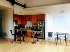 Rarely Available Three Bedroom two bathroom condo quality apartment inside the historic Russian Turkish Bathhouse on North ave./Damen/Milwaukee. This unit features soaring 19 foot ceilings with exposed steel, hardwood floors, an updated kitchen with cherry wood cabinets, granite counters and stainless appliances all in an incredible location. In unit washer/dryer. The unit has a second level master suite with a private deck. There is a one time non-refundable move in fee of 750.00 dollars in lieu of no security deposit. Available June 1st