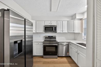 Recently upgraded Spacious, beautiful, 3 bedroom 2 bathroom with quratz countertops, LVP floors through-out. Family room with sliding glass doors to covered patio with storage. This is a ground floor unit with Private entrance. Washer/dryer provided. Exceptionally large master bedroom with separate dressing area. Walk-in closets in each bedroom. Separate Dinning room. Must see. 1 assigned parking and additional parking. Visitor parking available. Convenient to downtown, shopping Florida State College and UNF.