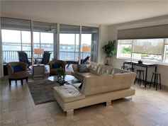 Gorgeous 5th floor residence with spectacular river and city views. Luxury high rise living...fully furnished and equipped! Simply bring your clothes and personal items! Spacious great room leading to screened balcony with hurricane shutters. Split bedroom floor plan for guest peace & quiet. Master bedroom with queen size bed has walk-in closet and ensuite bath. Second bedroom is fitted with a queen size bed. Den is ideal for those working from home. Freshly painted! Tile flooring throughout. Walking distance to Publix and all that downtown Fort Myers has to offer...dining, shopping and entertainment. High Point Place has fitness center, saunas, pool, hot tub, BBQ grills, gathering room and lots of social activities. NO pets. NO smoking.