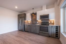 2 Bedroom, 2 Bath Condo at Public Lofts featuring wood flooring throughout and a modern kitchen with stainless steel appliances. This bright and open home offers walk-in closets, all appliances included — washer and dryer too — and a large private balcony perfect for relaxing or entertaining.