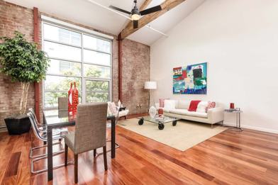 400 Spear Street #212 is an original 2 bedroom, 2 bathroom loft conversion in the heart of San Francisco's trendy South Beach neighborhood. The modern loft residence features original wood beams, a wall of exposed brick, west-facing loft windows, and a pitched ceiling with an exposed wood truss. This top floor bi-level loft comes complete with 2 bedrooms (one enclosed) and 2 full bathrooms. The chef's kitchen has stainless steel appliances including a new refrigerator, stove, and Bosch dishwasher. The large island overlooks the combination living/dining room. Designer upgrades include Brazilian cherry hardwood floors, new carpet and paint, a ceiling fan, upgraded light fixtures, an in-unit washer/dryer, and built-in closet systems. The first bedroom is enclosed with a door and features a large closet with built-ins and provides a separation that is typically missing in loft spaces. The master mezzanine suite has a closet, skylight, and en-suite master bathroom. One-car parking completes the home, which is also known as 101 Harrison Street #212. Located on the corner of Harrison and Spear at 400 Spear Street in South Beach, the Harbor Lofts is a loft conversion complex in one of San Francisco's oldest warehouse buildings. Originally known as the Hathaway Warehouse, this building was constructed in the 1850s and converted into 46 live/work lofts in 1996. Harbor Lofts has been well received by both the public and consumers and was awarded the Gold Nugget Award of Merit for Adaptive Reuse in 1997. The Harbor Lofts are ingeniously configured around a two-story courtyard lined with mature palm trees. One of the best amenities is a common deck area with a barbecue. The Harbor Lofts community is conveniently located near some of San Francisco's largest employers, tech companies, and the Financial District. South Beach is home to AT&T Park and some of the city's best bars, clubs, and restaurants including the award-winning Ferry Building. Enjoy easy access to BART, Muni, freeways, the Bay Bridge, and the Embarcadero.+