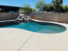 5 bedroom 3 bath open layout. Brand new wood tile through the downstairs and the staircase. The kitchen is fully loaded with a gas stove, stainless steel refrigerator, built in microwave, and dishwasher. The small breakfast nook off the kitchen leads to your outdoor oasis with a waterfall swimming pool. The backyard is very quiet and backs up to a RV storage which is monitored. The inside of the home has been completely painted and upgraded, the master bedroom is massive and great for any closet lover, the closet is impressive! Each bedroom has a walk in closet so plenty of space. The upstairs also offers a living space/ or office. The downstairs has 2 living areas and one formal dining area. This house is a must see! It won’t last long. Pool service will be provided by Kona pool and the monthly expense will be the tenants responsibility. Call today to schedule @ 520-971-3856
