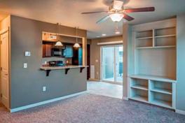 The living area is very cozy and the kitchen has a breakfast bar looking into the living room, the dining room is right off of the kitchen with a door leading out to your own private patio!