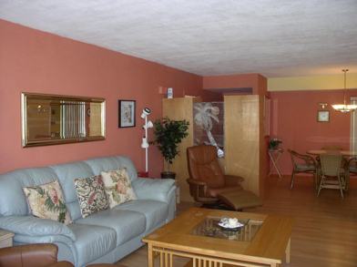 A 30 NIGHT MINIMUM STAY IS REQUIRED. There are three floors in this building with elevator. This unit sits the 2nd floor overlooking a pond and garden from two bedrooms, living room and comfortable built-out balcony. Flooring in this spacious condo is all newly placed wood laminate. Kitchen is dressed with Corian counters and Stainless Steel appliances. There is a dining area that seats four guests comfortably. The master bedroom is fitted with a Queen size bed with a walk-in closet. The second bedroom is also fitted with a Queen size bed, double closets and a TV. The living room furniture is modern leather and wood. This condo does not offer a sleeper sofa. A large living room will hold many guests for conversational parties.