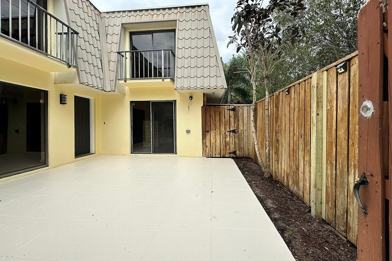 The tenant has moved out, and this lovely home is getting a fresh touch before welcoming new residents! Soon ready to move in, this bright and inviting 3BR/2.5BA residence offers comfort and style in a desirable gated community with a beautiful community pool, close to everything West Palm Beach has to offer. The first-floor guest bedroom has direct access to the courtyard, while the second-floor primary suite includes spacious walk-in closets, extra storage, and a guest bedroom with an oversized closet and private balconies. The upgraded kitchen features white cabinets and stainless-steel appliances, while tile flooring flows throughout. Enjoy peaceful moments or outdoor dining on your private fenced patio-a perfect place to call home!