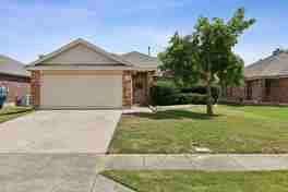 One story gem in a charming neighborhood. Laminate floors through out the house in great condition. No carpets. Freshly painted (most walls). Exemplary Frisco Schools! 7 min. walk to elementary school, 10 min. walk to middle school, 3 min. drive to high school. 3 large sized bedrooms, two living areas and two dining areas. Fabulous family room has a wood burning fireplace. Spacious kitchen has lots of cabinet space and a breakfast bar. Primary bedroom is big and has a nice primary bathroom with garden tub and separate shower plus a very large walk-in closet. Ceiling fans. Walk to community pool. Great community features which include pool, playground, jogging paths, and park! Beautiful window curtains stay. Homeowner pays HOA dues.